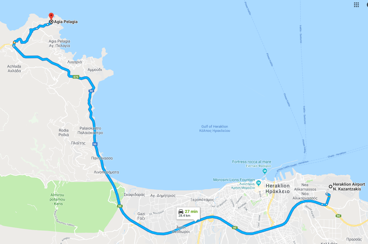 Getting the family to Agia Pelagia is not hard, with numerous budget carriers offering regular flights to Heraklion International Airport (HER). Flight time is around three hours and 45 minutes, which is just enough for a couple of movies and not too long that the children will get bored.