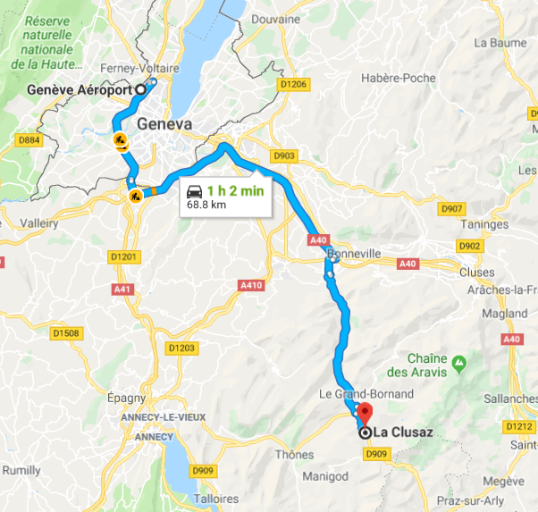 Um in das traumhafte La Clusaz zu gelangen empfehlen wir den Flughafen Genf (GVA) zu nutzen. Dort gelandet kann Sie ein Shuttle Direct Transfer abholen und innerhalb einer Stunde sicher in Ihre Unterkunft bringen.