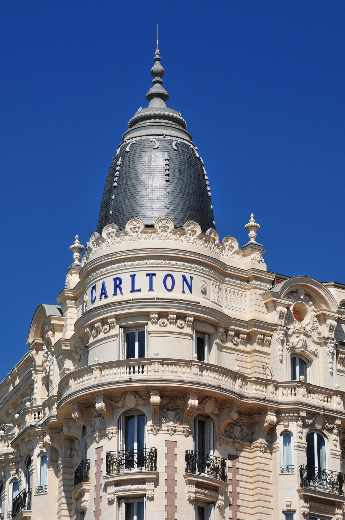 Während Ihres Spaziergangs, entlang der Strandpromenade, geht es an dem atemberaubenden Belle Époque Fassade der Carlton Hotels vorbei.
