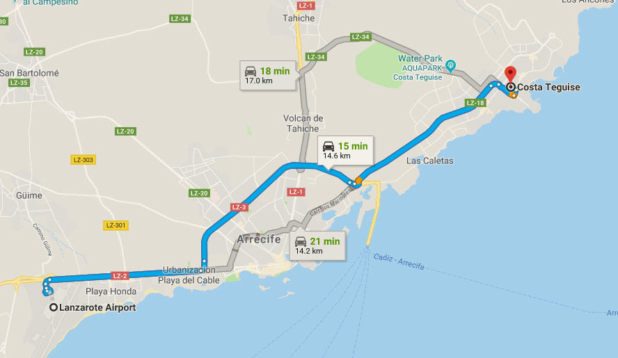Wenn Sie erst einmal in Lanzarote gelandet sind, haben Sie es fast geschafft – denn der Transfer nach Costa Teguise dauert nur 15 Minuten. Beim Anbieter Shuttle Direct können Sie diesen auch vorbuchen und haben dabei die Wahl zwischen einem privaten oder geteilten Shuttle.