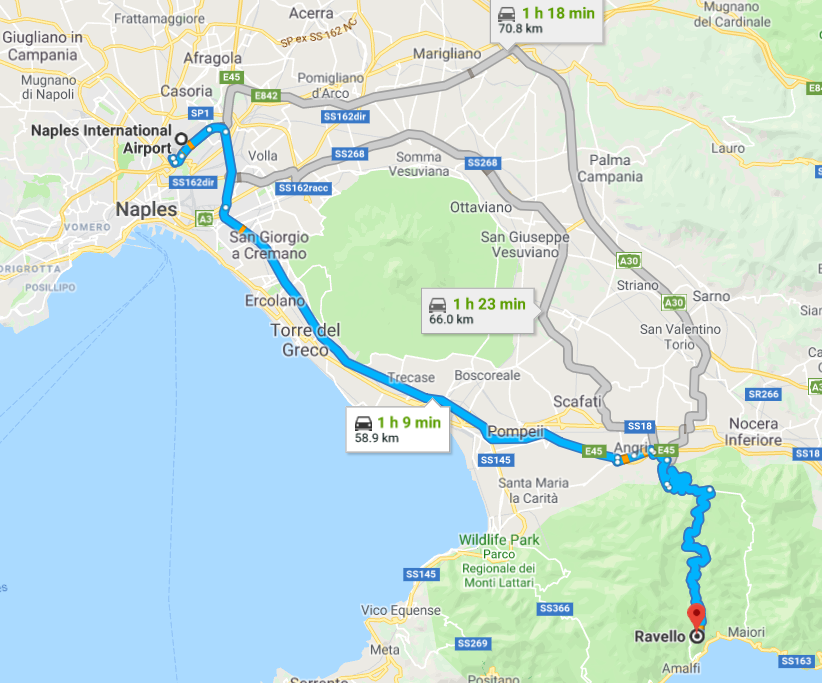 Falls Sie jetzt schon mit Ihrer Reiseplanung anfangen, lassen Sie sich noch ein paar hilfreiche Tipps geben. Die italienische Stadt Ravello ist am einfachsten über den Flughafen in Neapel (NAP) zu erreichen. Erst einmal in Neapel gelandet, trennt Sie nur noch eine 1 Stunde und 30 Minuten lange Autofahrt von ihrem Ziel. Ein Transferservice kann Sie und Ihr Gepäck die 79km lange Strecke fahren.