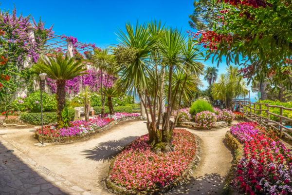 Der Eingang der traumhaften Villa Rufolo, die insbesondere für ihre Gärten bekannt ist, kennzeichnet ein Turm aus dem 14. Jahrhundert. Die Villa selbst wurde im 13. Jahrhundert erbaut und diente als Zuhause für alle Päpste, sowie auch für König Robert von Anjou. Die, wie schon erwähnt, weltweit bekannten Gärten werden auch als „Garden of the Soul“ bezeichnet und erstrecken sich über zwei Ebenen.