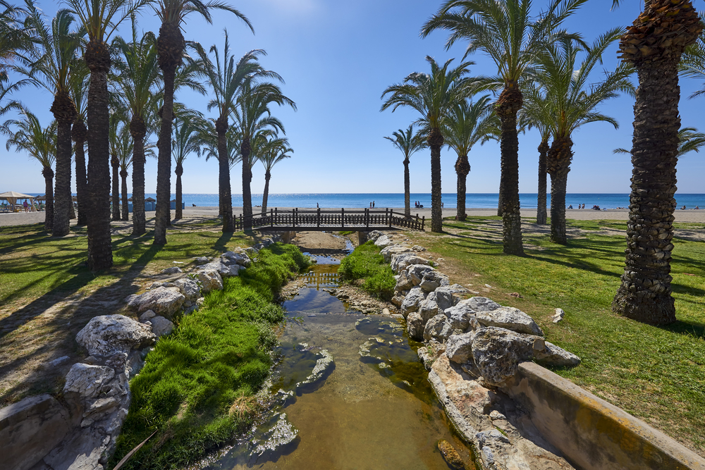 Der Strand Playamar, auch Playa El Retiro genannt, ist der bekannteste seiner Art in Torremolinos. Besonders einzigartig sind die üppigen „Green areas“ mit Palmen am Strand. Dabei handelt es sich um kleine Grünflächen, die mit Palmen und weiteren typisch spanischen Pflanzen bewachsen sind. Gerne kommen Gruppen, um in diesen kleinen grünen Oasen zu Picknicken. Und auch abends genießen viele Reisende farbenfrohe Cocktails unter den Palmen, während die Sonne am Horizont verschwindet.