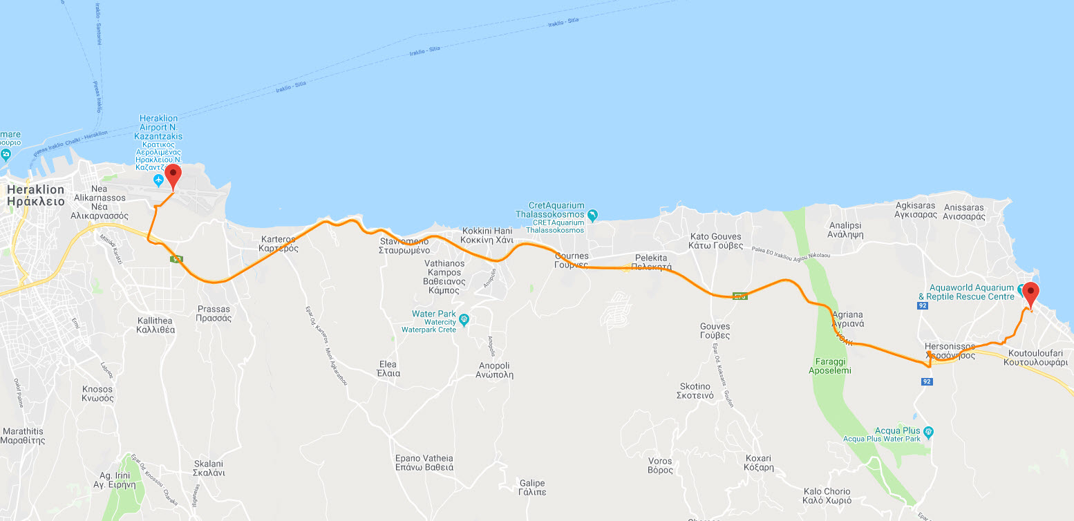 Um von Ihrem Wohnort nach Hersonissos zu gelangen, empfehlen wir es über den Flughafen Heraklion (HER) anzureisen. Dieser ist am nähesten am griechischen Resort gelegen und wird regelmäßig von Flugzeugen aus deutschen, sowie österreichischen Orten angeflogen. Einmal am Flughafen auf der Insel Kreta angekommen, haben Sie es schon fast geschafft, denn von dort kann Sie Shuttle Direct sehr einfach abholen und an Ihr Wunschziel bringen.
