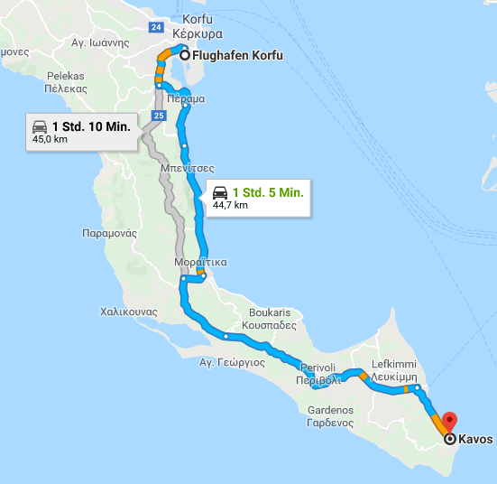 Über den Flughafen Korfu (CFU) erreichst du Kávos mit Flugesellschaften wie Condor und Aegean mit einer Flugzeit von 3 bis 5 Stunden.