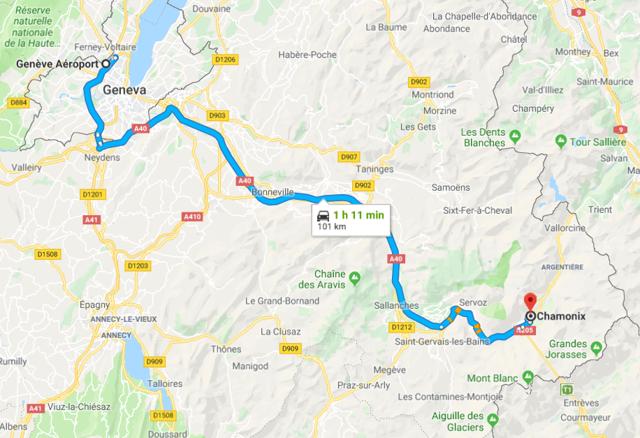 Um in den verschneiten Bergen Frankreichs sicher anzukommen, buchen Sie am besten ein Flug zum Flughafen Genf (GVA). Dort angekommen bringt ein Transferservice Sie und Ihre Familie nach Chamonix. Der Transfer dauert circa eine Stunde und 10 Minuten.