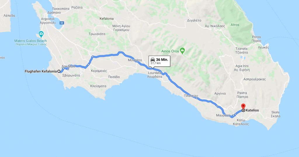 Ich empfehle Ihnen einen Flug zum Flughafen Kefalonia (EFL) zu buchen. Wenn Sie noch vor Beginn der Reise einen Shuttle Direct Transfer Service buchen, wird dieser bereits am Flughafen auf Sie warten. Die Autofahrt bis zu Ihrer Unterkunft wird circa 45 Minuten dauern, da es sich um eine Strecke von 30 Kilometern handelt.