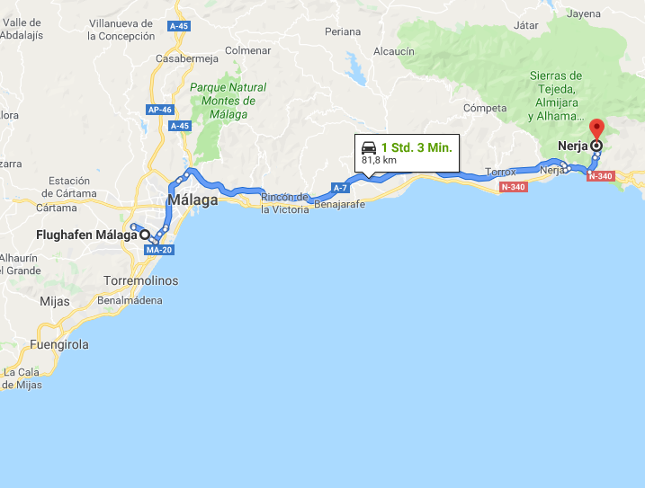 Sie wollen möglichst rasch in Nerja ankommen? Dann ist es empfehlenswert den Flughafen Málaga (AGP) zu nutzen. Dieser wird stängig von Maschinen aus Österreich, Deutschland oder der Schweiz angeflogen. Am Flughafen angekommen kann Sie ein Shuttle Transferservice abholen und sicher zu Ihrer Unterkunft bringen.