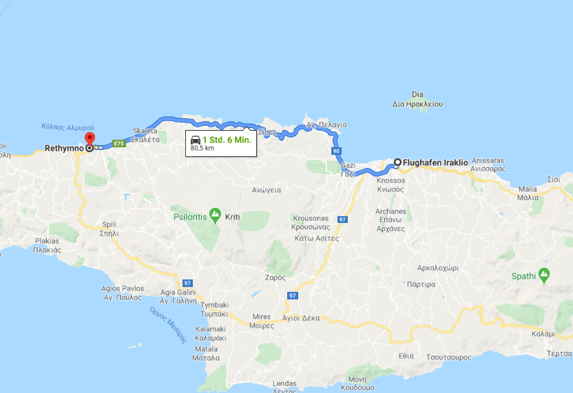 Griechenland hat insgesamt 15 internationale Flughäfen, dein Landeplatz ist der Flughafen Heraklion (HER) (ca. 80km von Réthymno) und je nach Abflugsort aus Deutschland, Schweiz oder Österreich dauert die Flugzeit zwischen 3 und 4 Stunden. Laudamotion bietet im Moment Direktflüge unter €100!