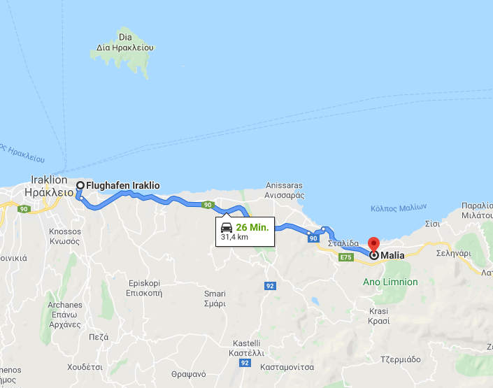 Schon in Partystimmung? Gut! Die Anreise zur Partylokation dauert jedoch etwas länger als daheim, aber es wird sich lohnen. Um die Reise so stressfrei wie möglich zu erleben ist es empfehlenswert ein Flugticket zu dem Flughafen Heraklion (HER) zu buchen. Sind Sie erst einmal gelandet und haben Ihr Gepäck wiedergefunden, kann Sie ein Shuttle Direct Transferservice abholen. Die Transferzeit von dem Flughafen nach Malia beträgt circa 33 Minuten.