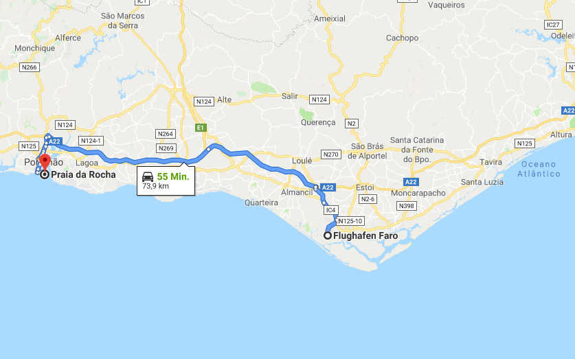 Hier ein paar praktische Hinweise für die Reiseplanung, um die Anreise nicht unnötig stressig und langwierig werden zu lassen. Allem Voran ist zu erwähnen, dass ein Flug zum Flughafen Faro (FAO) empfehlenswert ist, da er nicht weit von Praia da Rocha entfernt liegt. Um genau zu sein, haben Sie nach der Ankunft an dem Flughafen nur noch 69 Kilometer vor sich. Um diese Strecke zurückzulegen ist es praktisch einen Shuttle Direct Transfer im Voraus zu buchen. Dieser kann Sie in circa 59 Minuten bei Ihrer Unterkunft absetzten.