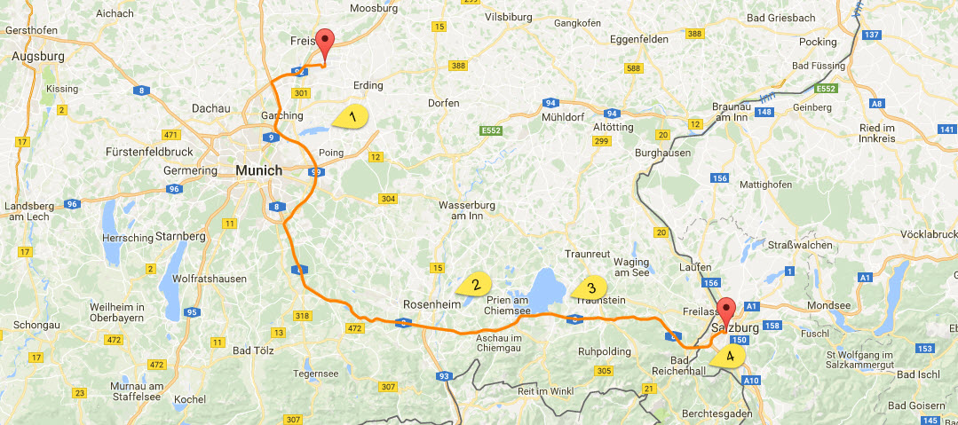 Dieser Routenführer, dient zur Orientierung eines Besuchs der Region. Ihr Flughafentransfer von München nach Salzburg, beinhaltet keine Haltestellen, zu diesen Orten.