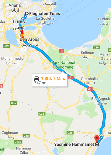 Der Flughafen Tunesien (TUN) wird von mehreren Fluggesellschaften wie Lufthansa, Turkish Airlines sowie Air France angeflogen und ist das Tor zum Urlaubsparadies Yasmine Hammamet.