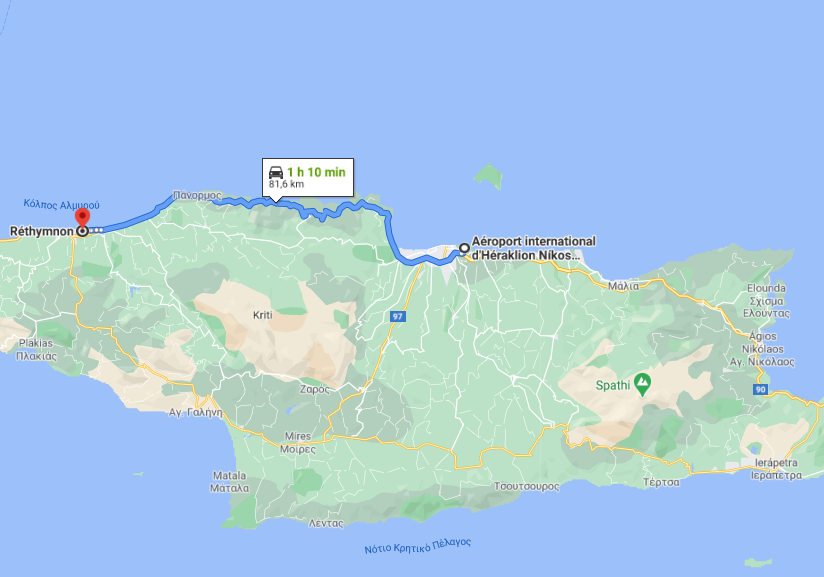 To get from the airport to your hotel, I’d suggest pre-booking an airport transfer. Having a Heraklion airport transfer already organised will make your trip a lot easier. An airport transfer from Heraklion Airport to Rethymno will take about an hour and 20 minutes.