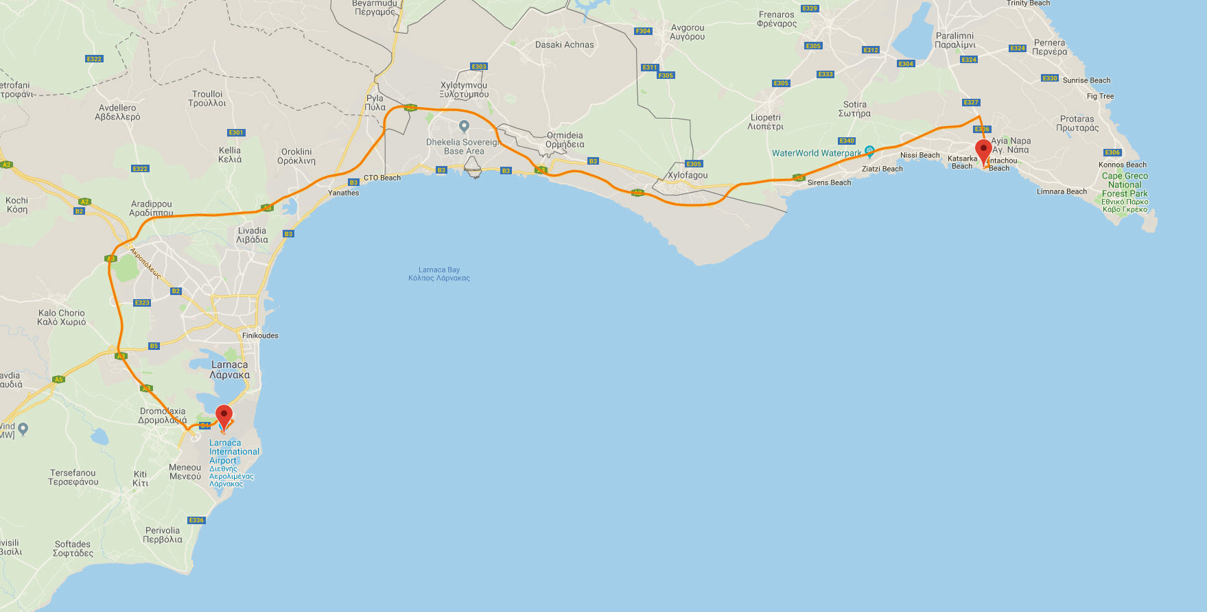 Travelling to Ayia Napa is simple. A flight into Larnaca Airport from the UK takes around 4.5 hours, with the drive from here to most of the above hotels averaging at about 50 minutes. To make your transfer even easier, I suggest booking online with Shuttle Direct. You will be picked up outside the airport and taken straight to your chosen hotel or villa.