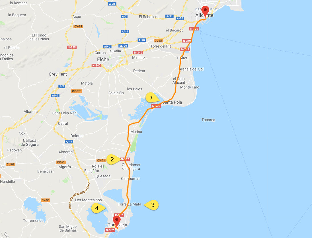 NB. This route guide has been compiled as an aid to visiting the region. Your airport transfer service from Alicante to Torrevieja does not include stops to these destinations.