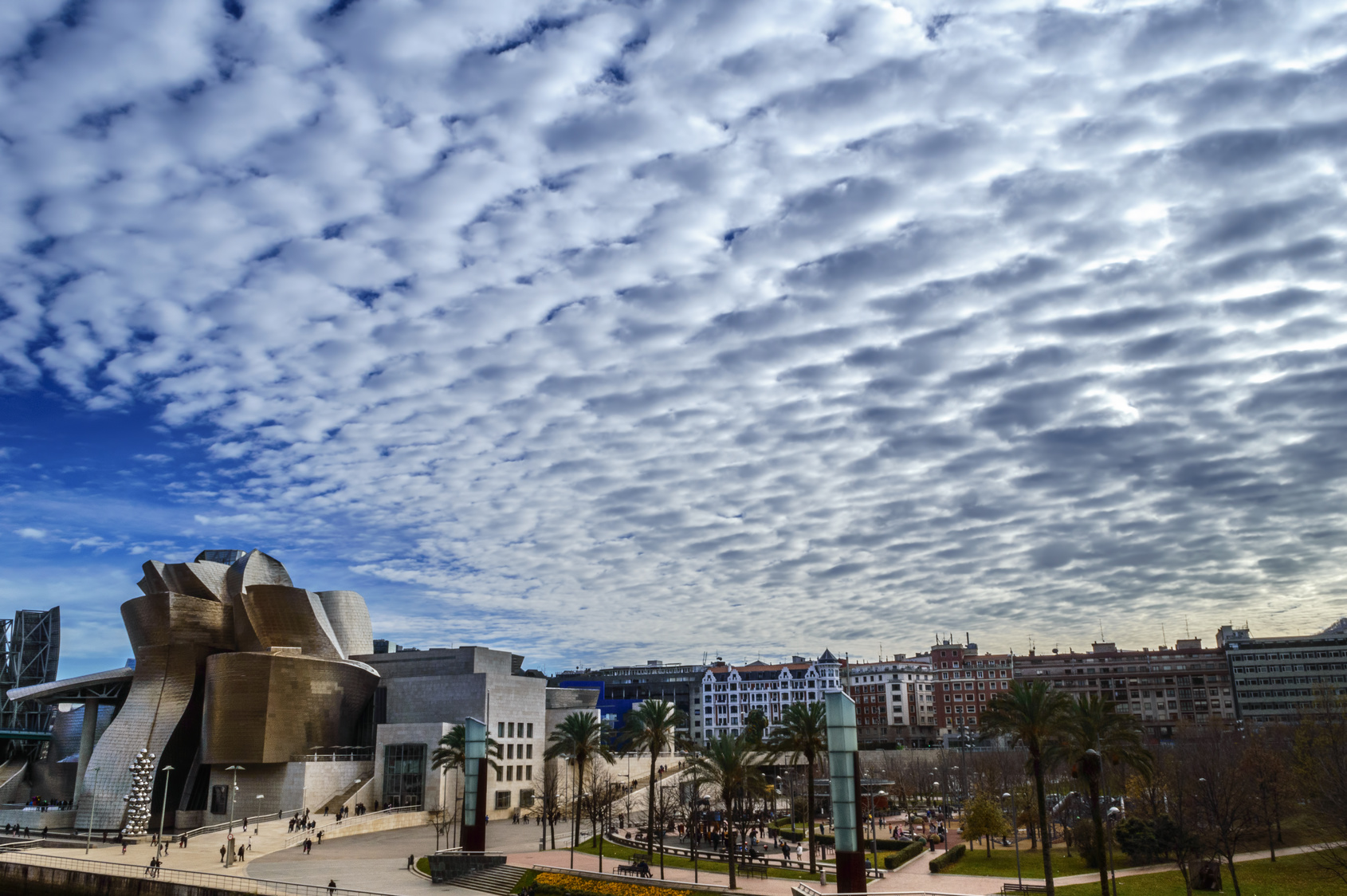 Guggenheim Museum: Whether you approach the Guggenheim from the metro station or from your tour bus you cannot help but be mightily impressed by its titanium structure. Located on the banks of the city’s Nervión River it was designed by the Canadian-American architect Frank Gehry with a theme reflecting Bilbao’s industrial past. Whilst the interior houses a permanent exhibition and frequent temporary exhibitions of considerable importance, it is the structure itself which will live long in the memory of most visitors.