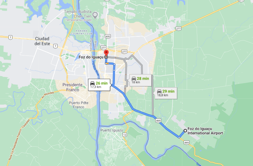 International travellers can fly to Foz do Iguaçu Airport on connecting flights from Sao Paolo. The airport lies 18km south-east of Foz do Iguaçu and 15km east of the Argentinian town of Puerto Iguazú. Border crossings between the two countries are generally fast and trouble-free. There is an airport bus (#120) which goes to the town of Foz do Iguaçu in one direction and the Iguazú Falls in the other. Taxis are plentiful, otherwise you can book a private transfer from Foz do Iguaçu Airport into the town, to the falls or across the border into Argentina. Travellers in Argentina would be advised to take a domestic flight from Buenos Aires to Cataratas del Iguazú International Airport which lies 20km south-east of Puerto Iguazú.