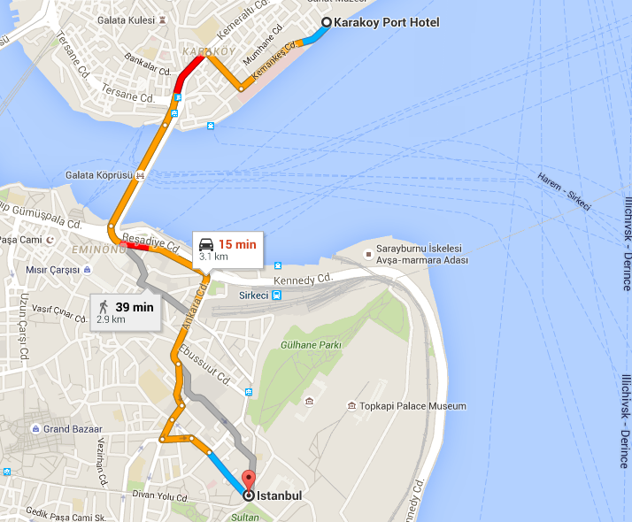Now it’s time to cross the Golden Horn, the long and narrow estuary that separates the historic centre of Istanbul from the newer part of the city (if you can call Galata Tower’s 700 years of history ‘new’). The Galata Bridge has spanned this stretch of water since the 6th century, though it has been replaced many times. Symbolically, the bridge is a link between the traditional cultural centre of old Istanbul (ancient Byzantion and Constantinople) and the newer districts of Galata, Beyoğlu, Şişli and Harbiye. Since the late 19th century, the bridge has featured prominently in Turkish literature, art, and poetry.