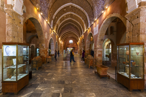 The old Venetian Monastery of San Francisco, later a mosque, then Chania’s first cinema, now plays host to a veritable treasure trove from the island’s ancient past as the Archaeological Museum of Chania. Neolithic finds from the caves around Chania stand on permanent exhibition with Minoan-era pottery and some stunning mosaics. Around other corners, Roman jewellery and coins show how prosperous this trading post was in those days.