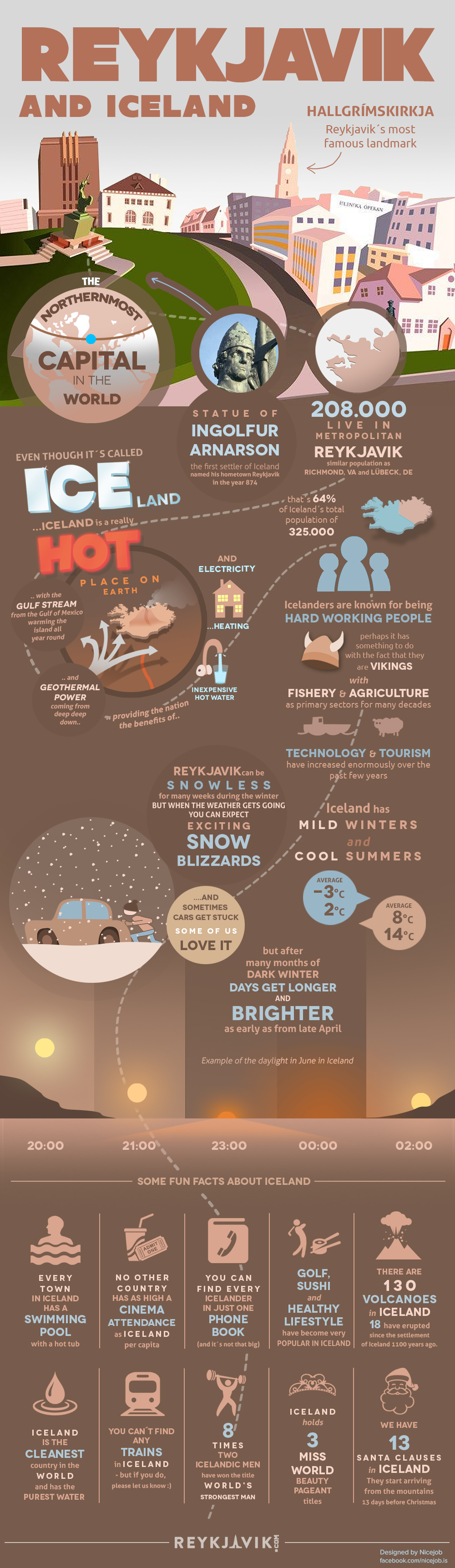 Iceland is unfairly neglected by the travelling world. With its dramatic landscapes, temperate weather conditions, massive glaciers and geothermal hot springs, this northernmost country can sound a little intimidating. However, as many travellers are discovering, Iceland and its capital of Reykjavik have hidden depths, charm and have recently become a foodie’s paradise. It is worth considering the fun facts from this infographic, which will surely pique your curiosity and entice you to venture to the land of the Vikings!