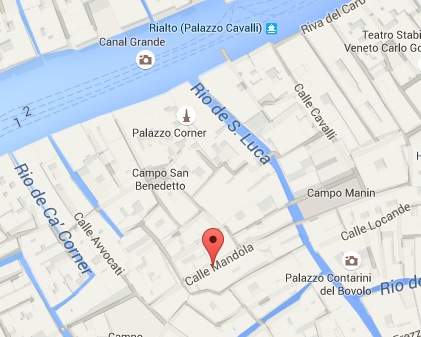 Pizzería L´Angelo, que además de tener una comida que está muy buena, es muy económica. Está en la calle della Mandorla, muy cerca del Río de S. Luca, tal y como figura en el mapa: