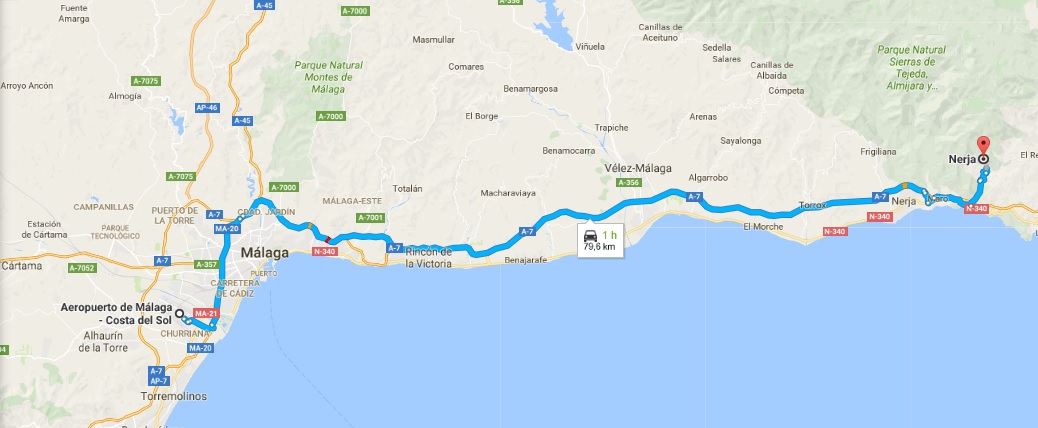 Si optas por desplazarte a Málaga en avión, aterrizarás en el aeropuerto Costa del Sol. Está situado a casi 80 kilómetros de Nerja, por lo que el trayecto se realizará en una hora. Sé previsor y reserva, de antemano, el transporte que desde allí te llevará a tu hotel.
