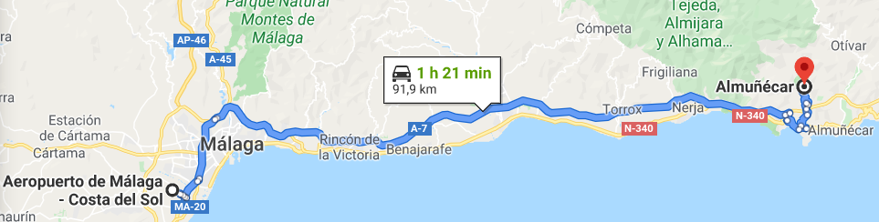 En todo caso, el aeropuerto más cercano a Almuñécar es el de Málaga. Desde este aeropuerto a tu alojamiento en Almuñécar, hay aproximadamente 91 kilómetros, una hora y media de camino sin tráfico ni paradas. Para hacer tu viaje lo más fácil posible, te recomendamos que reserves con antelación un traslado con Shuttle Direct. Podrás escoger entre un servicio compartido y privado.