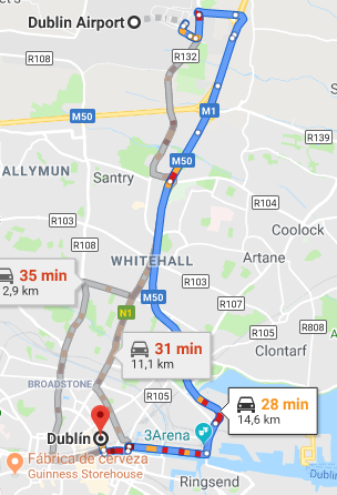 En tu viaje a la capital de Irlanda aterrizarás en el aeropuerto de Dublín, situado en la zona norte. Está separado por más de 16 kilómetros del centro de la ciudad. El trayecto se prolongará durante, aproximadamente, 25 minutos.