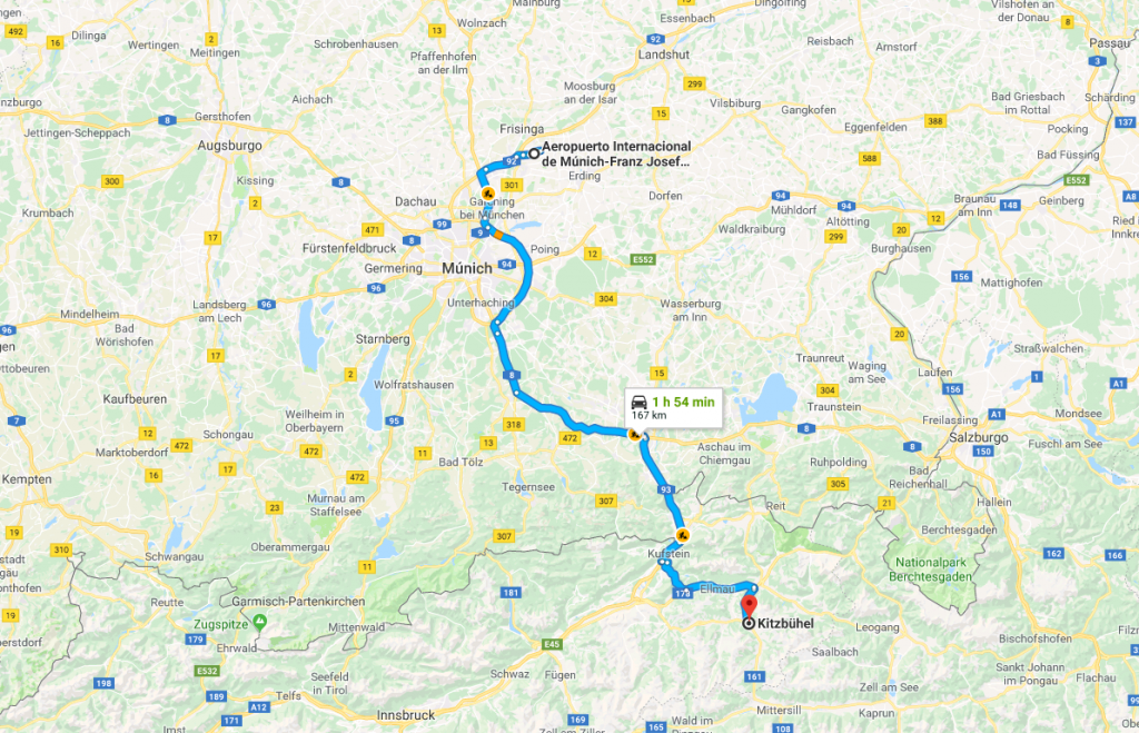 Para para recorrer las casi dos horas que hay desde el aeropuerto de Múnich a Kitzbühel, te aconsejamos que contrates un traslado con Shuttle Direct. Disfrutarás de un transporte cómodo y económico que te permitirá llevar todo tu equipaje, incluidos tus esquís, y hacer la reserva no te llevará más que cinco minutos. Eso sí, ten en cuenta que debes comunicarnos que llevas tu propio equipo para esquiar para darte un servicio adecuado.