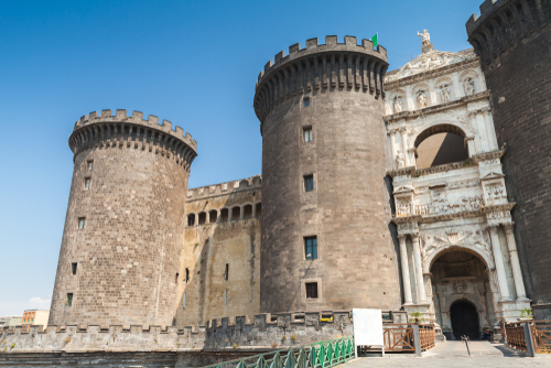 Si después de la comida has recuperado fuerzas, te aconsejamos que continúes tu visita hasta llegar hasta Castel Nuovo, una estructura de piedra construida en 1279 y que fue residencia real y fortaleza que vio muchos hitos históricos en el pasado, además de ser un centro de mecenazgo de diferentes reyes que contribuyeron a las artes. En su interior podrás encontrar frescos del Renacimiento pintados por Giotto. El arco del triunfo situado en la entrada conmemora la entrada de Alfonso I de Aragón en Nápoles en 1443.