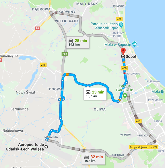 La duración del viaje hasta tu alojamiento en Sopot no durará más de 25 minutos, sin tener en cuenta el tráfico, pero durante ese tiempo ya puedes divisar el paisaje en torno a la ciudad así que te recomendamos que contrates previamente un traslado que te permita disfrutar del trayecto. Si reservas un traslado privado con Shuttle Direct, el conductor te recogerá directamente en el aeropuerto y te llevará hasta la puerta de tu hotel.