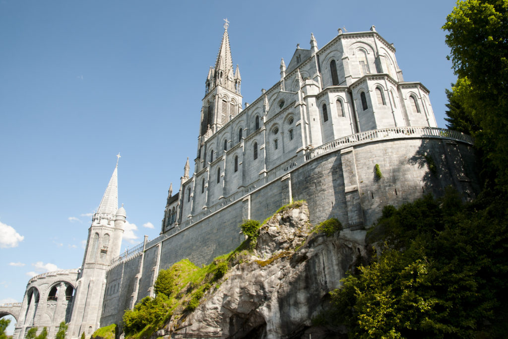 La Basílica de la Inmaculada Concepción se eleva por encima de la Gruta de Massabielle, en un lugar muy destacado en la roca. Fue construida entre los años 1866 y 1872 y es conocida, en ocasiones, como la Basílica Superior.