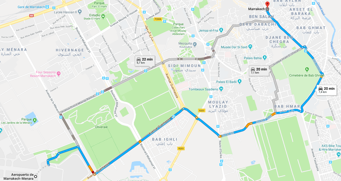 El desplazamiento hasta tu raid, o tu hotel, en Marrakech está estimado en unos 20 minutos.