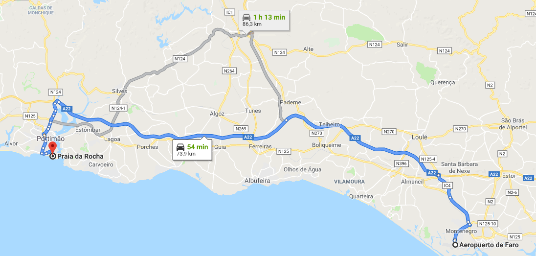 El aeropuerto de Faro es el que sirve a toda la región del Algarve portugués. Praia da Rocha se encuentra a 74 kilómetros de este aeropuerto, el trayecto dura unos 57 minutos en coche aproximadamente. No encontrarás ningún problema en encontrar vuelos diarios con compañías de bajo coste en este aeropuerto.