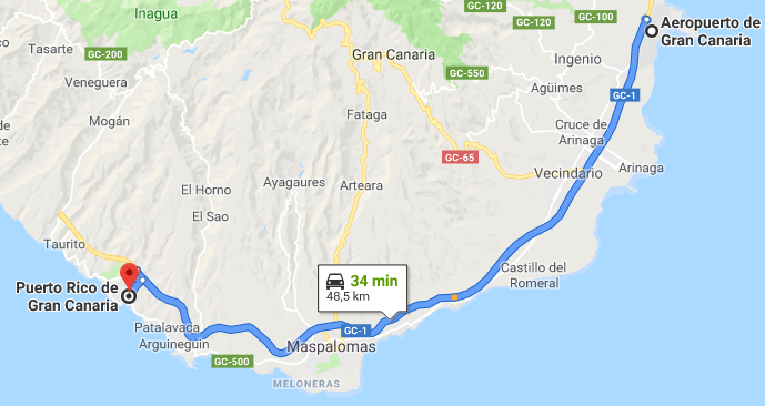 El aeropuerto más cercano a Puerto Rico es el Aeropuerto de Gran Canaria que se encuentra situado a tan solo treinta y seis kilómetros de la ciudad.