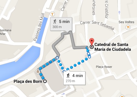 Continuamos con el recorrido. Desde la Plaça des Born, podemos ir a la Catedral de Santa María de Ciutadella, que la tenemos al lado.