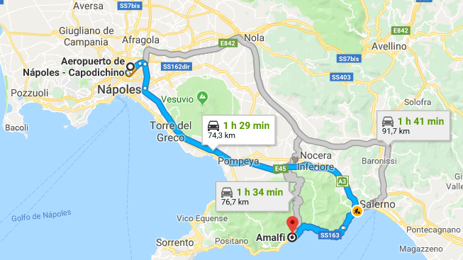 Desde el aeropuerto de Nápoles hasta Amalfi hay casi una hora y cuarto de camino por carretera por lo que te recomendamos que tengas en mente contratar un servicio de traslado con antelación en la página web, para evitar sorpresas con el transporte. Si primas comodidad por encima de presupuesto en tu viaje, escoge un traslado privado que te llevará a ti y tu grupo directos hasta tu alojamiento. Si por el contrario buscas precio, escoge un traslado compartido para ahorrar gastos.