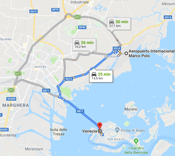 Nosotros te recomendamos que aterrices en el Aeropuerto Internacional Marco Polo, ubicado a 13 kilómetros de Venecia. Enseguida llegarás a su centro histórico, si accedes a la ciudad a través del Ponte della Libertà. En ese caso el traslado está estimado en unos 15 minutos.
