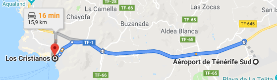 L’Aéroport de Tenerife Sud, autrement connu comme l’Aéroport Reina Sofia, est situé à 17 kilomètres (à peu prêt 15 minutes) au sud-ouest de la capitale, Santa Cruz de Tenerife, desservant les destinations de vacances sur la côte sud de l’île, y compris Los Cristianos.