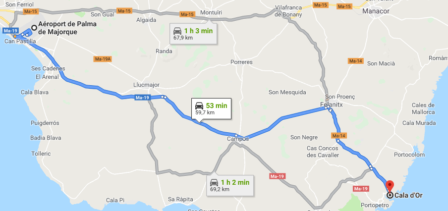 Si vous voulez profiter de chaque instant de votre séjour à Cala D’Or, réservez un transfert de l’Aéroport de Palma de Mallorca. Le trajet dure entre une demie heure et une heure.