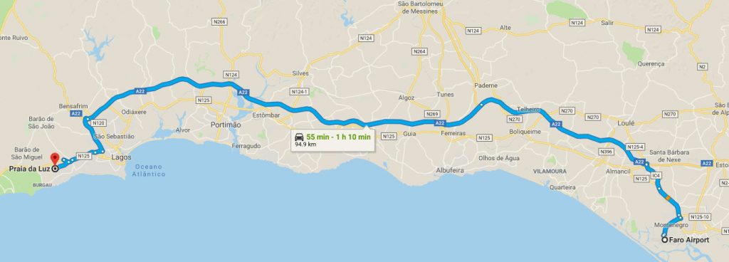 Alors, si vous préférez un trajet plus reposant, Shuttle Direct offre une solution de transport confortable et économique de l’Aéroport de Faro aux villes voisines. Le trajet de route entre l’aéroport et la station de Praia da Luz dure environ une heure.