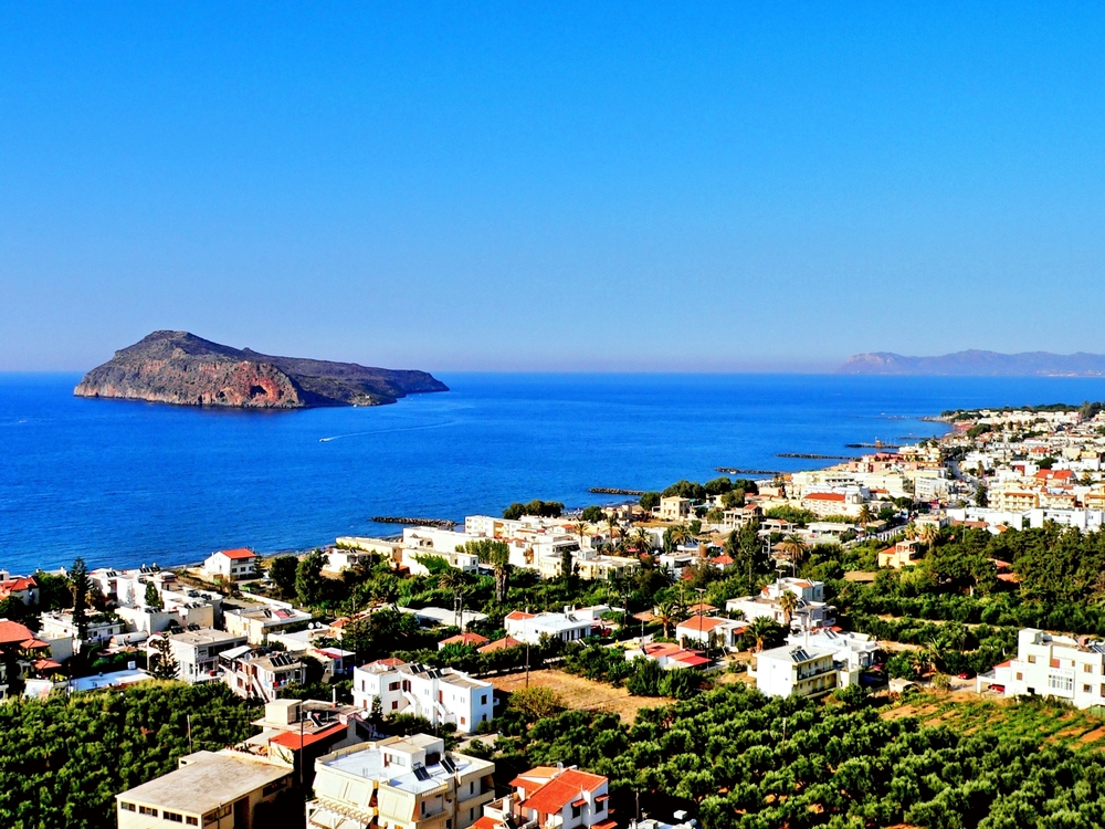 Platanias, un petit village, se situe sur l’île de Crète (la plus grande île de Grèce) à environ 30 kilomètres de l’aéroport de Chania (ou la Canée en français).