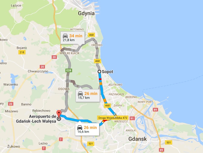 De nombreuses compagnies aériennes fournissent des vols vers la Pologne à partir de la France. Pour plus d’informations, contactez votre agence de voyage, ou recherchez les vols disponibles en ligne. La plupart des gens visitant Sopot atterrissent à l’Aéroport de Gdansk. L’aéroport de situe à environ 16 kilomètres de Sopot et le trajet en voiture dire à peu près 25 minutes sans retards.
