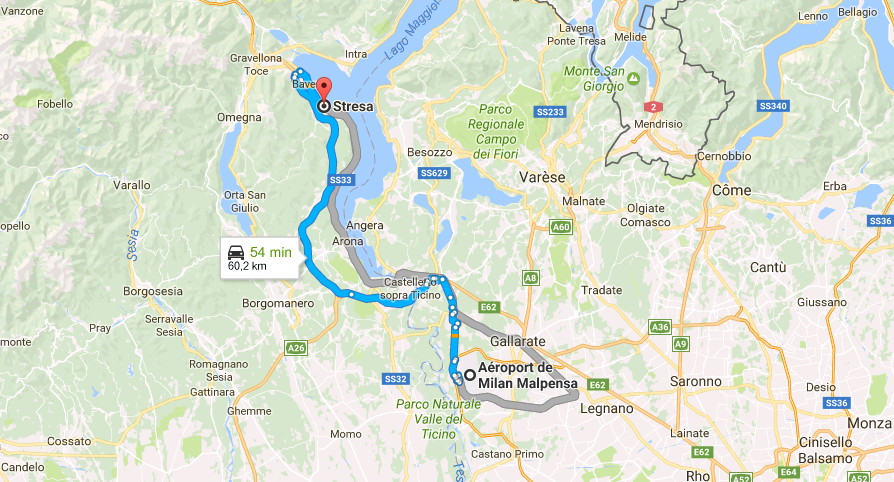 L’Aéroport de Milan-Malpensa en Italie est l’un des aéroports les plus proches du Lac Majeur et Stresa, à environ 54 kilomètres de la station. Le voyage en voiture dure environ une heur.