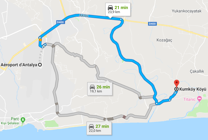 La distance entre l’Aéroport d’Antalya et Kumköy est 24 kilomètres (le trajet dure seulement 20 minutes). Il y a beaucoup d’options pour vous rendre à Kumköy, mais cela dépend de votre budget et de la façon dont vous souhaitez voyager.