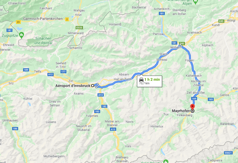 L’Aéroport Munich International, situé à 196 kilomètres de Mayrhofen, est l’un des aéroports qui desservent la station hivernale. Par contre, il est aussi possible de vous rendre à la station de ski depuis l’Aéroport d’Innsbruck, qui se trouve à seulement 40.75 kilomètres.