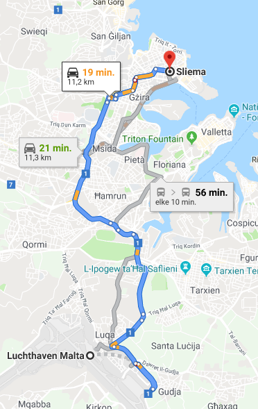 De rit tussen de luchthaven en Sliema duurt ongeveer 15 minuten en je kunt via onze website zien welke opties wij aanbieden voor jouw specifieke route op de uitgekozen data. Je zult uit een gedeelde transfer of een van de privé mogelijkheden kunnen kiezen, afhankelijk van je voorkeur en je budget. De verschillende privé transfers brengen je rechtstreeks naar je eindbestemming dankzij de chauffeur die je op staat te wachten en je met de bagage en eventuele vragen kan helpen. Op deze manier hoef je op niemand te wachten, hoef je onderweg nergens te stoppen en je kunt uit verschillende soorten voertuigen kiezen als je gaat boeken. De gedeelde transfer is het goedkoopst en dan ga je met medereizigers langs de verschillende hotels om mensen af te zetten of op te halen en daarom kan het zijn dat je niet gelijk naar je accommodatie gaat, maar zo kom je misschien wel op plekken waar je anders nooit zou komen.