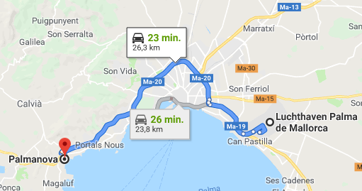 De rit tussen de luchthaven en Palma Nova duurt ongeveer 30 minuten en je kunt zelf kiezen of je voor een gedeelde transfer wilt gaan of toch liever privé vervoer boekt. Met de gedeelde transfer ben je het goedkoopste uit, maar dan kan het zijn dat je wat langer onderweg bent want dan ga je langs de verschillende accommodaties van de medereizigers en zo zie je ook meer van de omgeving. Als je liever rechtstreeks naar je accommodatie wilt om de koffers achter te laten en gelijk met je vakantie wilt beginnen, dan is een privé transfer de optie die je moet boeken. Met de privé transfer ga je zonder te stoppen naar je eindbestemming en daar kom je dankzij de lokale chauffeur die je op staat te wachten bij aankomst en die je met de bagage zal helpen.