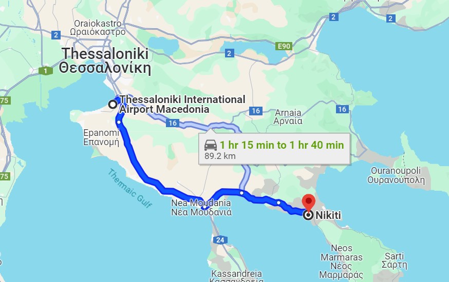If you’re coming on holiday with a larger group of family or friends, consider a minibus to get from the airport at Thessaloniki to Nikiti. The logistics are greatly simplified when everyone and all the luggage gets to travel in the same vehicle, and you’ll be taken right to the door of your accommodation.